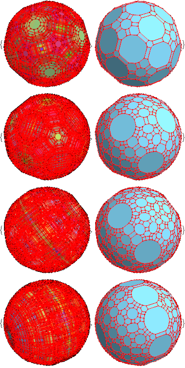 Please see several prior posts presenting (with now much improved) sectioning visualizations of Coxeter’s Regular Polytope book Table V here, 120-diminished rectified 120-cell (aka. Swirl-Prism) here, and 90=6×15 matrices of links to the 15 Weyl orbit permutations (with associated Coxeter-Dynkin diagrams) of the 4-polytope 5, 16/8, 24, 600/120 cell sections/animations here.