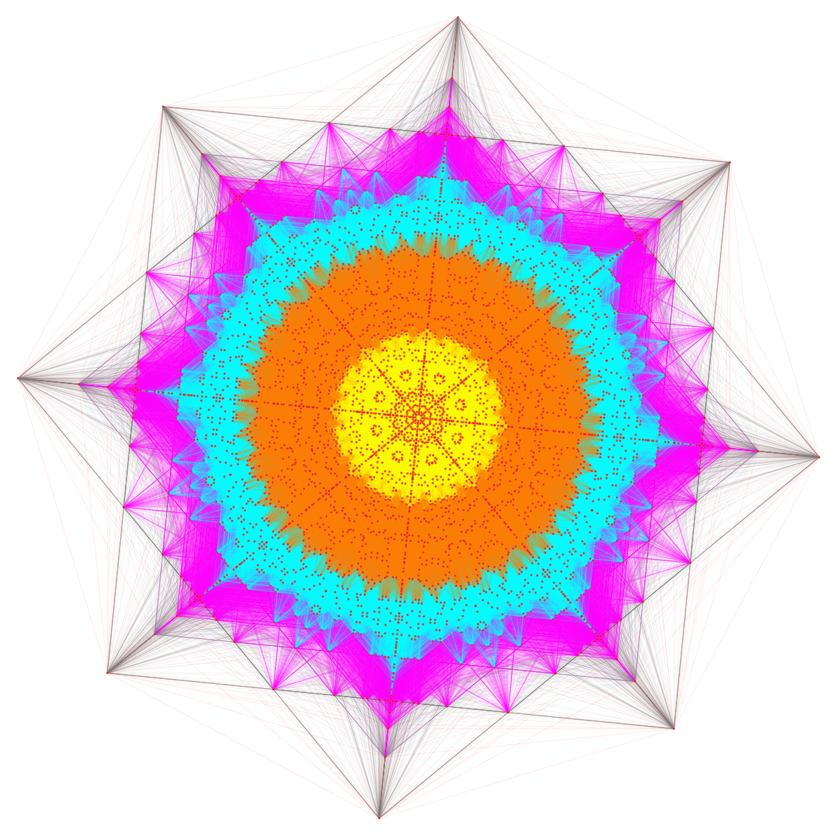 As above with 604800 edges of 16D norm=4 with colors assigned by projected edge lengths