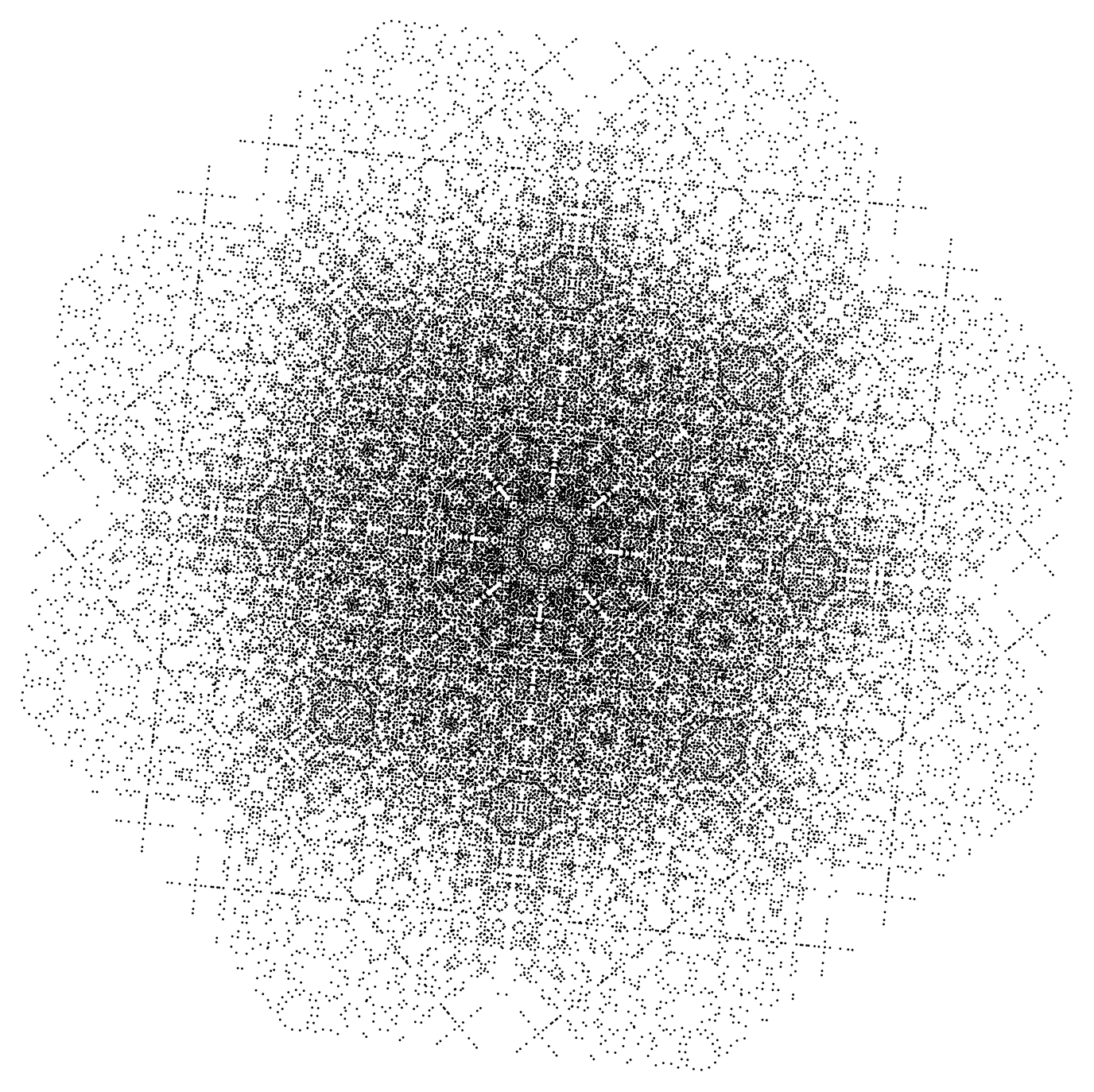 So, here is the full E8 in the same Coxeter B4 projection with vertex coloring based on the overlap counts.